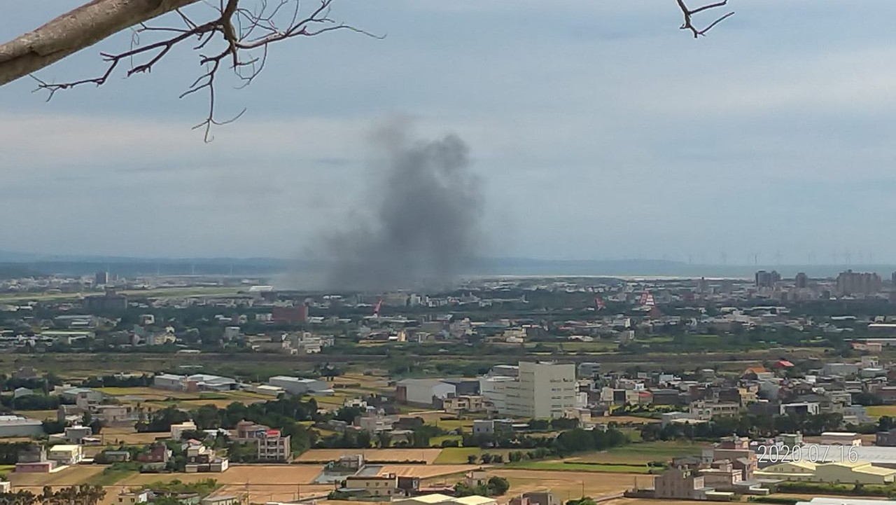 ▲直升機墜落,現場飄出濃濃黑煙。(圖/翻攝新竹大小事)
