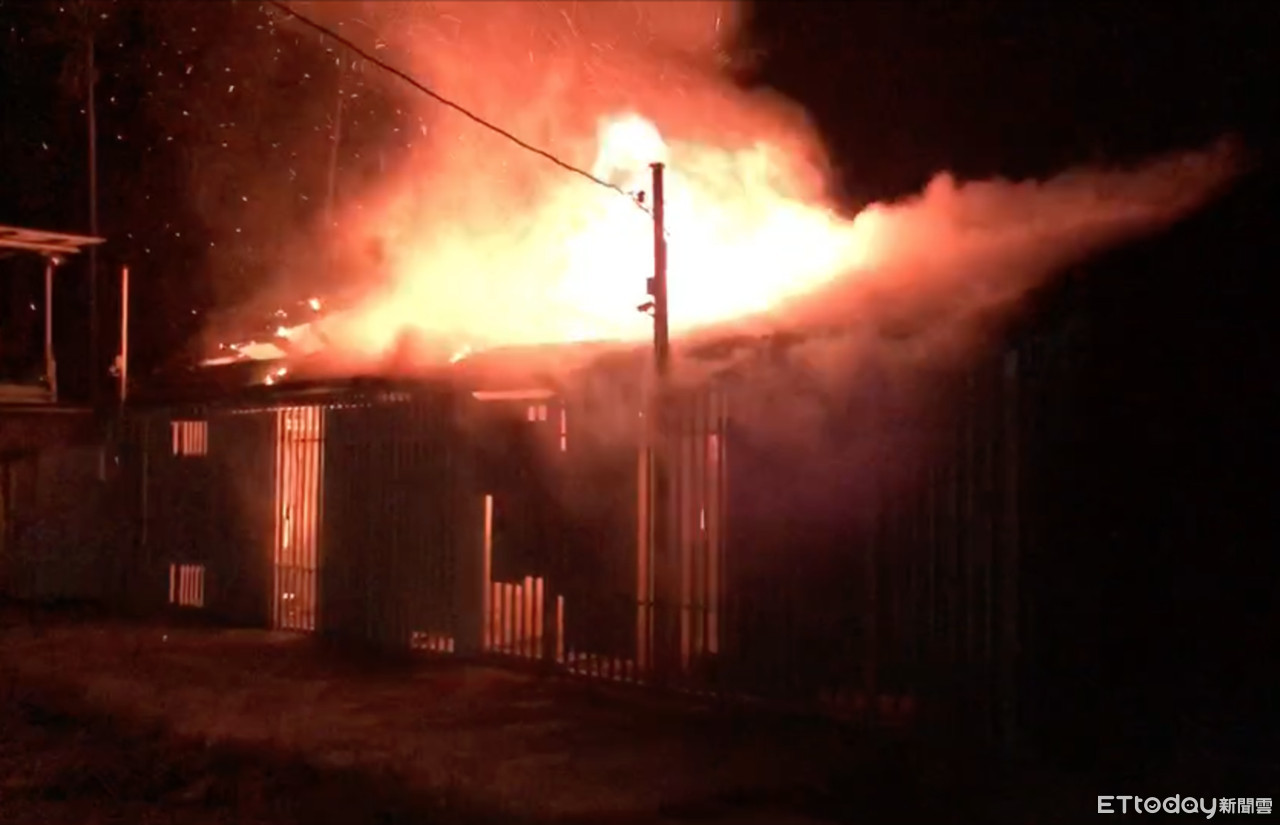 ▲大埤鄉北鎮村昨日晚間9點多傳出火警,平房建築全面燃燒,屋旁竹林與雜草助火勢一發不可收拾。(圖/記者蔡佩旻翻攝)