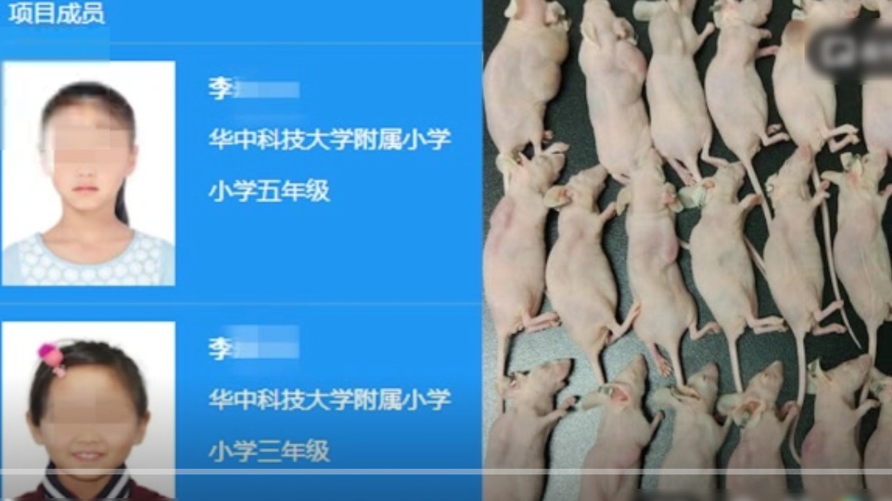 湖北武漢兩名小學生先前參加全國青少年科技創新大賽,以研究「茶多酚抗癌」獲獎,並在過程中取出20多隻小鼠的內臟,完成了「小鼠實驗」。不過,研究曝光後,卻被大批網友質疑造假,認為小學生不太可能有膽量及技術取出小鼠的內臟,並指小鼠實驗沒花上數年時間,根本不可能有成果。