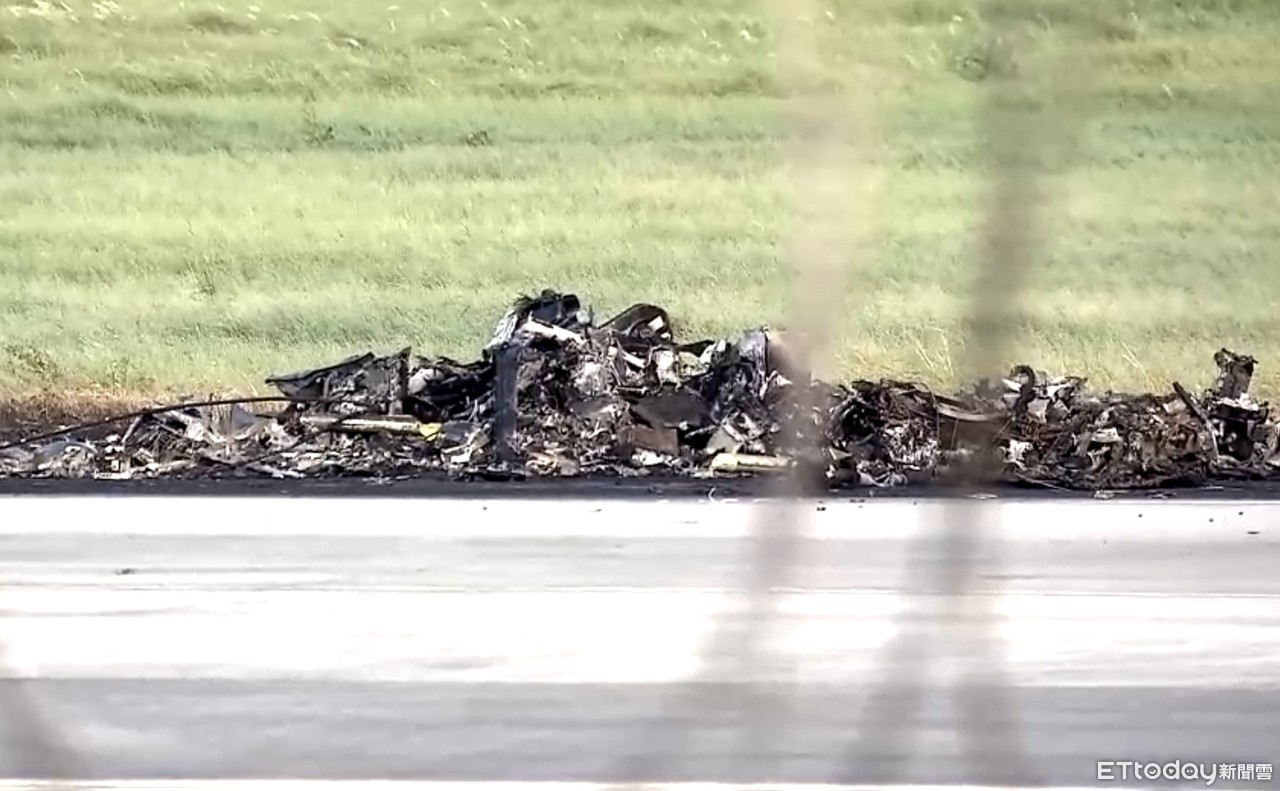 ▲新竹空軍基地戰搜直升機墜毀現場,機身燒得只剩下殘骸。(圖/記者陳凱力翻攝)