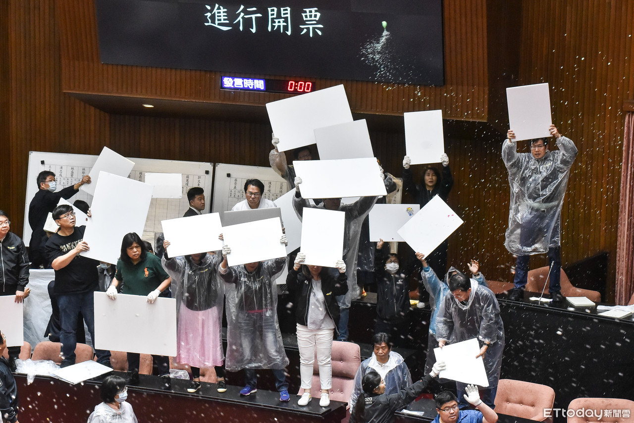 ▲立法院臨時會表決監察委員人事同意權案,國民黨立委丟水球阻撓開票進行。(圖/記者李毓康攝)