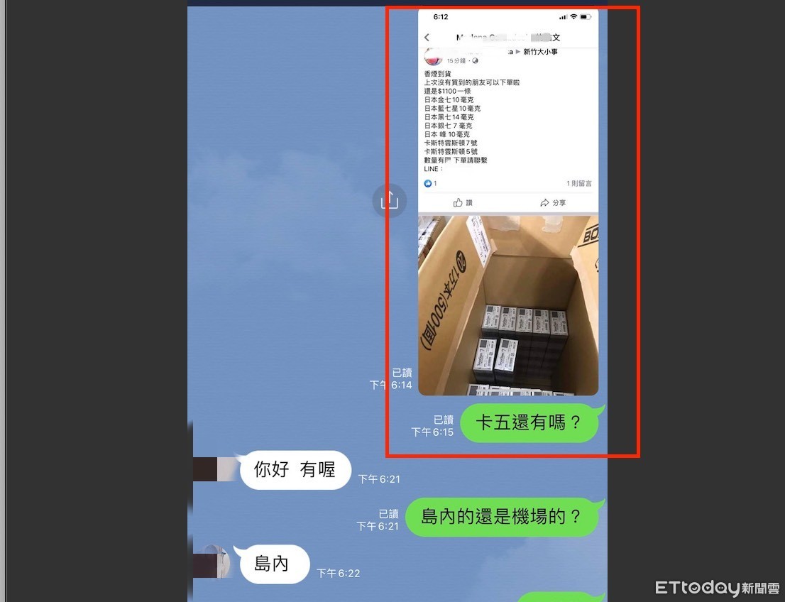 這名購買到飛機杯的男子小李,向《ETtoday新聞雲》記者表示,6日在臉書看到賣菸廣告,所以他依照廣告找到一名賣家,雙方透過通訊軟體來聯絡,小李表示要購買11條香菸,不過對方還提醒他是宅配超商,最多只能夠4條香菸,可見是屬於老手。