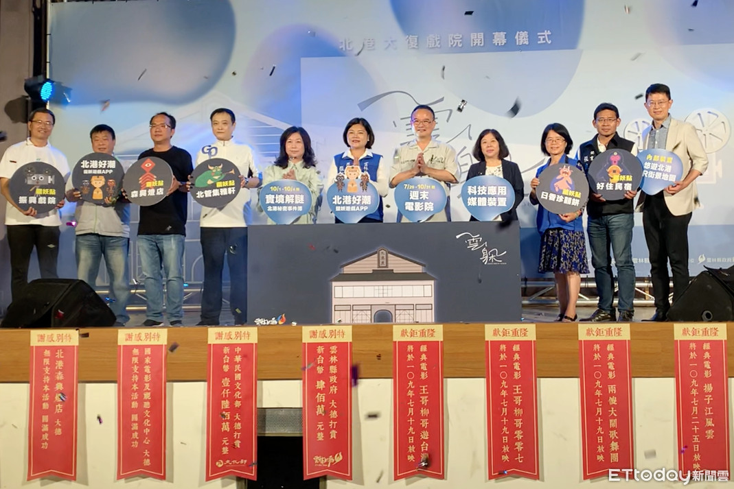▲雲林縣北港鎮歷史最悠久的大復戲院今(18)日上午重生開幕,雲林縣長張麗善與文化部次長蕭宗煌一同為重生的大復戲院正式揭幕。(圖/記者蔡佩旻攝)