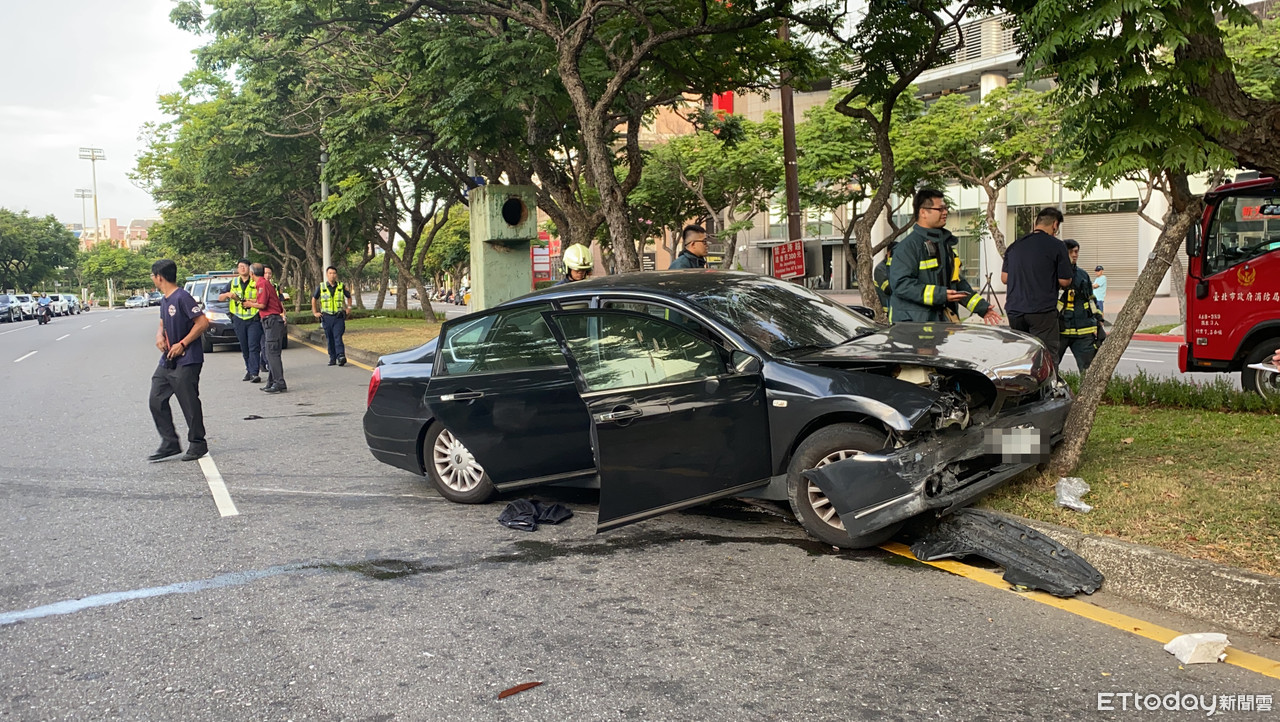 據了解,洪姓女子(21歲)開著黑色Nissan 轎車,由南往北行經士林區忠誠路二段,在天母新光三越前高速失控,先擦撞到路旁人行道花圃,再往左衝向路中分隔島,撞上路樹後才停下。車內安全氣囊爆開,車頭鈑金變形、擋風玻璃碎裂,車上4人一度因車門變形受困車上。