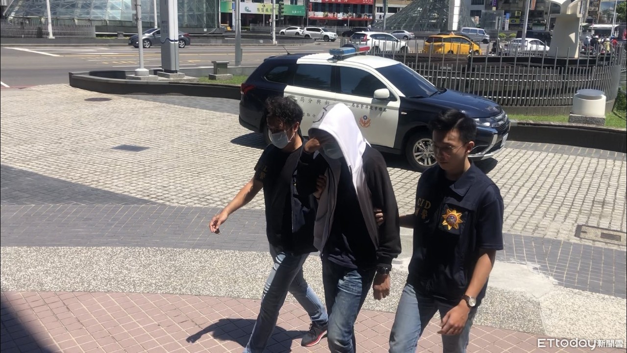 ▲新興刺人案主嫌遭逮捕歸案,將帽簷壓低、戴上口罩,深怕長相曝光。(圖/記者黃子倩攝)