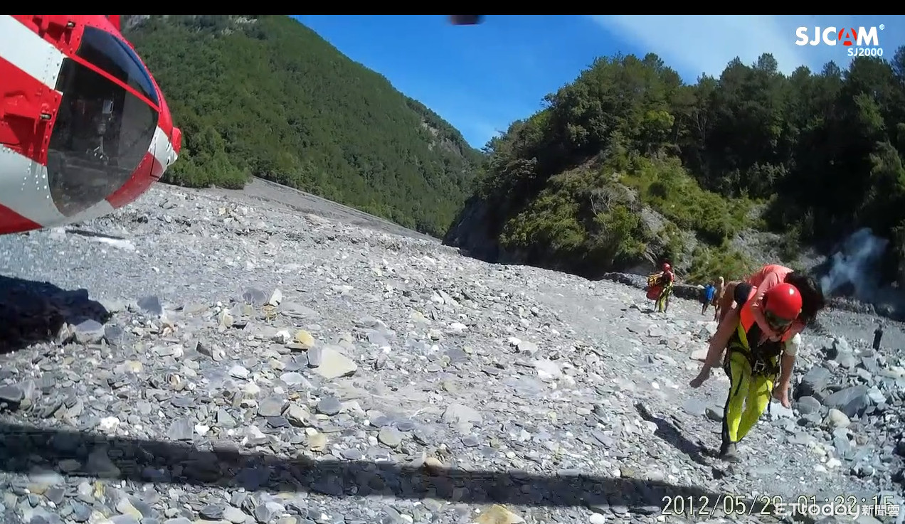 ▲郭女攀登安東軍山不慎摔倒,空勤總隊出動黑鷹直升機於河床邊將郭女救起。(圖/空勤總隊提供)