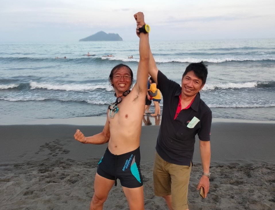 ▲倉管司機林家和(上圖左)12小時頭城外澳來回泳渡龜山島,是台灣單日頭城來回龜山島第一人。(圖/林家和提供,下同)