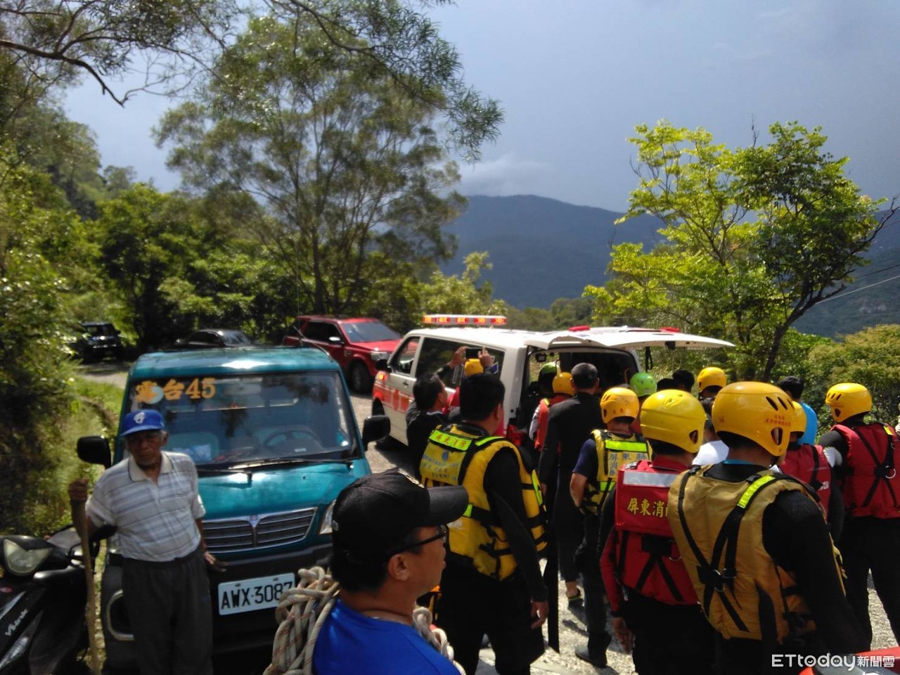屏東縣政府消防局今天中午12時58分接獲民眾報案,指於霧台鄉神山瀑布有人溺水,表示人卡在水中,需要救援,立即派遣第一大隊、霧台、三地門、瑪家及特搜大隊前往,出動各式搶救車輛人員計8車18人。