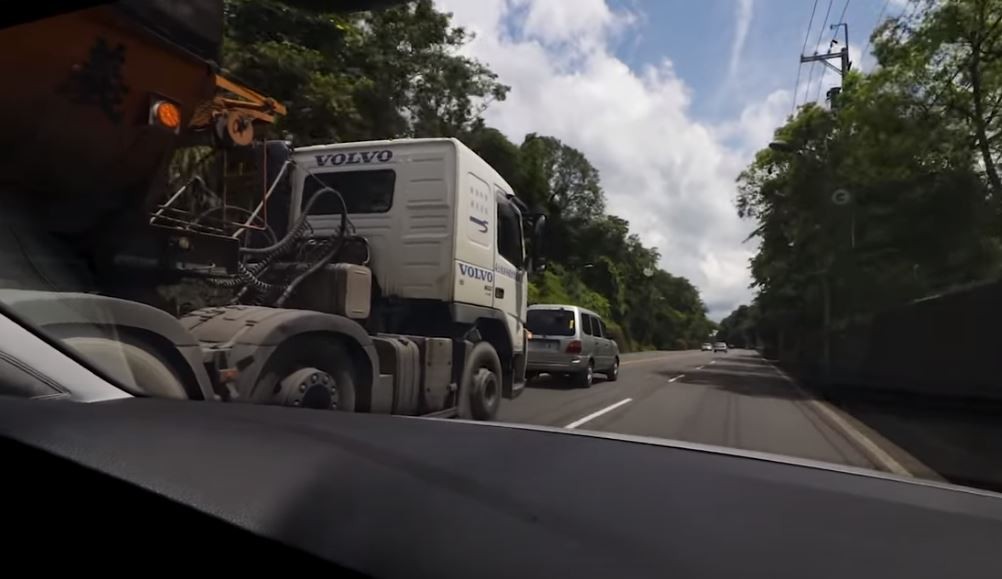 影片中可以看見,連續2輛砂石車的恐怖行為讓2人心有餘悸,Kim嚇得大喊「哪有人這樣跟車的,這太危險了」、「如果他突然煞車,可能我們2個就完了……」。Naick則大罵,「X,這是怎樣」、「我們和對向轎車之間根本沒有空間可以擠進去,這是時速60公里的道路,這太瘋狂了,到底在想什麼。」