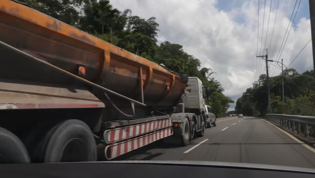 ▲砂石車惡意逼車。(圖/翻攝自Youtube「Naick & Kim」)