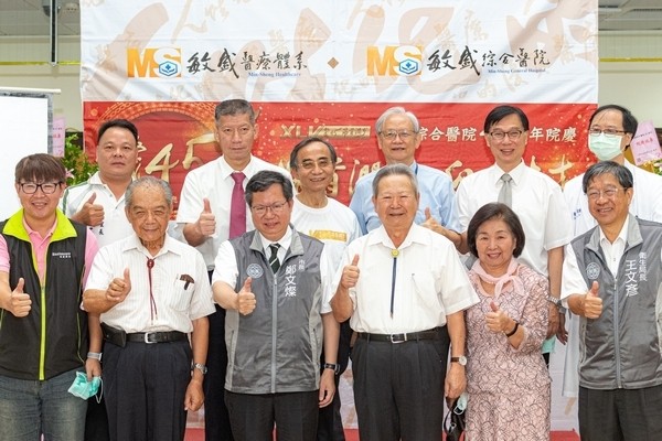 而敏盛醫療體系旗下的盛弘醫藥公司及敏成公司,都是防疫國家隊的重要成員,尤其敏成公司作為國內熔噴不織布龍頭大廠,以支援國內口罩生產為第一要務,婉拒了國外企業包廠包線的要求,疫情期間國內口罩廠濾材原料,近4成是由敏成公司所供應,獲得蔡英文總統公開表揚,他身為桃園市的大家長,對於桃園在地企業參與防疫國家隊的優異表現也感到與有榮焉。
