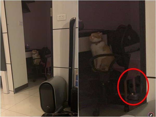 沒想到,寵物都待在客廳,女友起床上廁所卻驚慌逃回房間求救,原來海水越來越靠近門口,從起初的床上跑到床邊,接著跑到門口的電腦椅旁,「來越想越不對勁 就請女友用手機架著去錄影看看。」