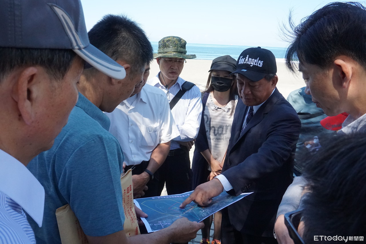 ▲台南市議會議長郭信良(右二),與籌備會焰火處人員及市府相關局處到觀夕平台現勘。(圖/記者林悅翻攝,下同)