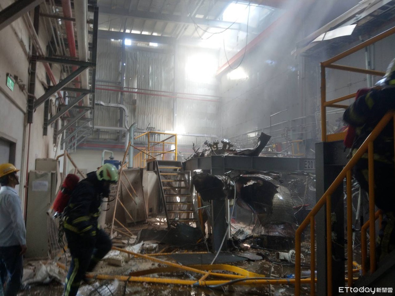 這起爆炸意外,驚動廠區的所有員工,第一時間緊急通報消防協助,2名人員受傷,其中1人輕微受傷不願就醫,另一名較嚴重送醫,整起事件所幸沒有引燃火勢,但實驗室也被炸得面目全非,廠區內有設置儲存易燃氣體的槽體,消防員嚴加戒備,所幸沒波及到其他廠區,至於確切的爆炸原因,仍有待進一步調查釐清。