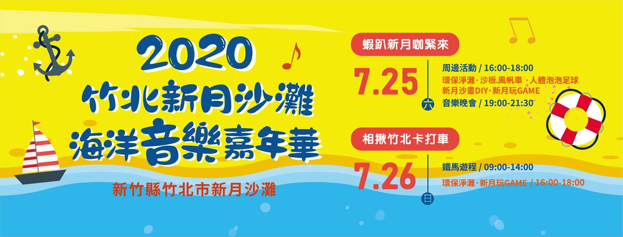 暑假又有地方可以去了!近日,新竹縣政府宣布,將在25、26日舉行《2020竹北新月沙灘海洋音樂嘉年華》,邀請到畢書盡、徐佳瑩等多位大咖音樂人到場表演,除此之外,現場還有各種體驗活動。今年活動邁入第9年,特別增加「鐵馬遊程-相揪竹北卡打車」,讓民眾沿著豆仔埔踏著卡丁車,感受竹北在地獨有景色。