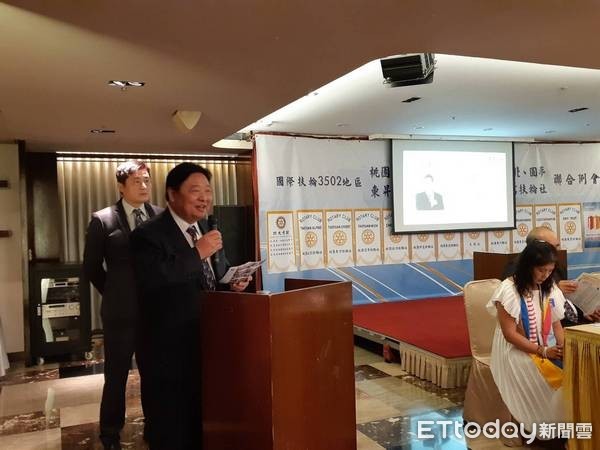 ▲桃園東區扶輪社節目主委陳啟昌推崇鄭文燦執掌桃園市政,用人不分黨派,人和政通。(圖/記者楊淑媛攝)
