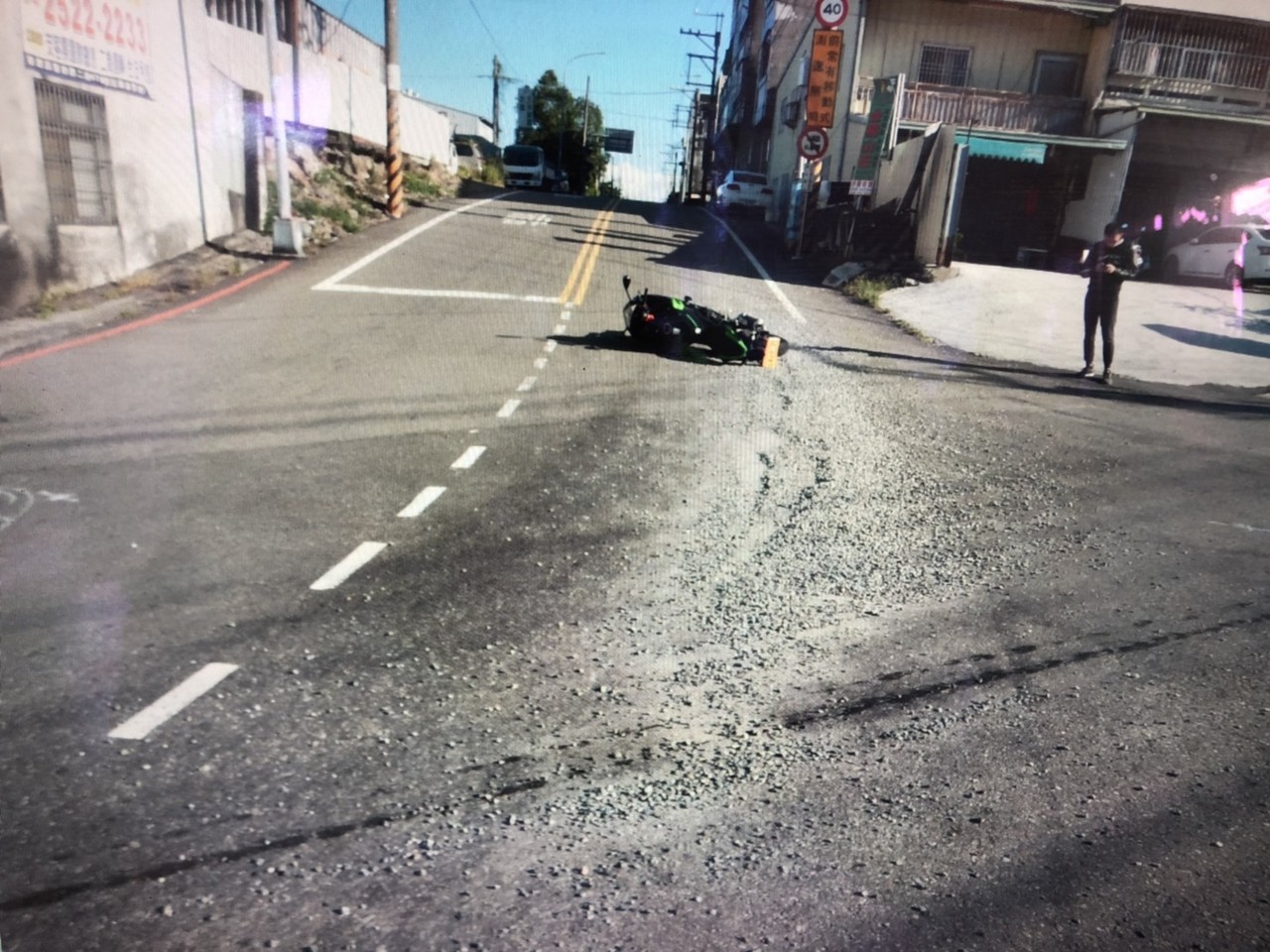 ▲吳姓騎士因為地面散落砂石,導致自摔。(圖/民眾提供)
