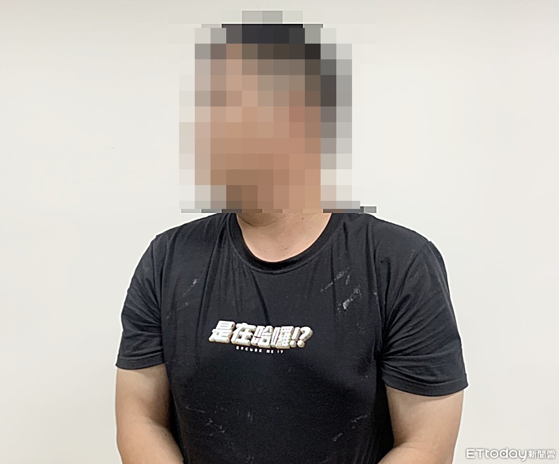 ▲中壢警方逮捕詐騙集團黃姓車手到案,衣服胸前寫著「是在哈囉!?」相當明顯。(圖/記者沈繼昌翻攝)