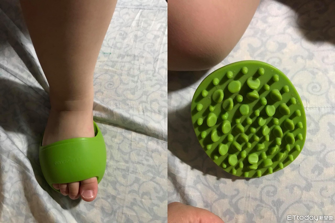 這名網友在「爆怨公社」上發文表示,「一直找不到我的按摩器。吼......不要拿去當拖鞋啦你。為何我的女兒每天都要讓我崩壞」。從原PO發出的照片可以見得,女兒竟拿了她的按摩器,並將自己的小腳掌塞進縫隙中,若有其事的準備往前行,看起來毫無違和感。
