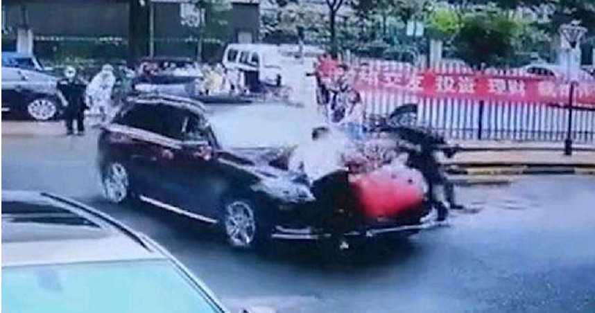 綜合陸媒報導,事發於襄陽市欣欣佳園社區3號門崗,從監視器畫面中可見,當時一名手拿著紅包的人示意賓士禮車停下,沒想到下秒車輛竟加速往前衝,一連撞倒好幾人,最後撞上一對姐弟。不過婚禮並未因這場意外中斷,新人下車後照常進行儀式,僅有肇事司機當場被警方逮捕。