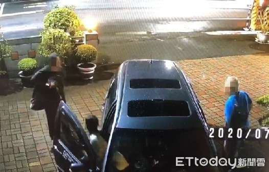 ▲黃姓男子將王嫌(黑衣)釣出,直接以車子載到歸仁分局太廟派出所報案,指控遭王嫌詐騙。(圖/記者林悅翻攝,下同)