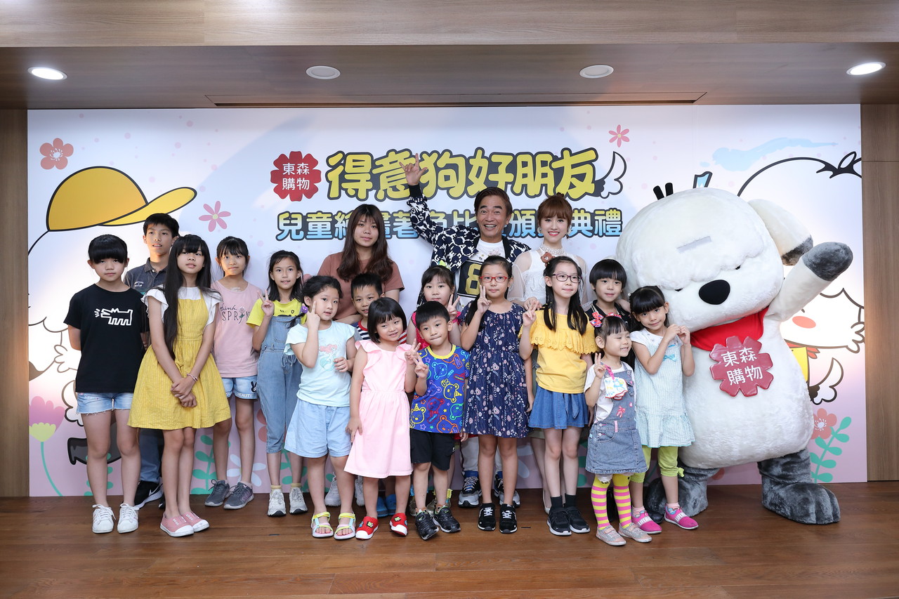 一筆一畫一世界,許多孩子樂於透過色彩描繪出內心的無限想像!東森購物今(7/23)舉辦「第一屆得意狗好朋友兒童繪畫著色比賽頒獎典禮」,眾多畫畫小天才齊聚一堂,東森購物代言人、綜藝天王吳宗憲與吳姍儒Sandy父女檔特別出席擔任頒獎嘉賓,與大小朋友一起同樂,而這次的圖畫主角超人氣吉祥物「得意狗」也熱情現身、萌翻眾人。