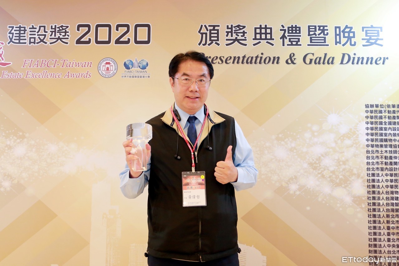 ▲2020年國家卓越建設獎出爐,台南市長黃偉哲積極推動延續性重大建設,努力開創新局,贏得評鑑委員肯定,獲得國土建設特別貢獻獎,由副總統賴清德親自頒獎表揚。(圖/記者林悅翻攝,下同)