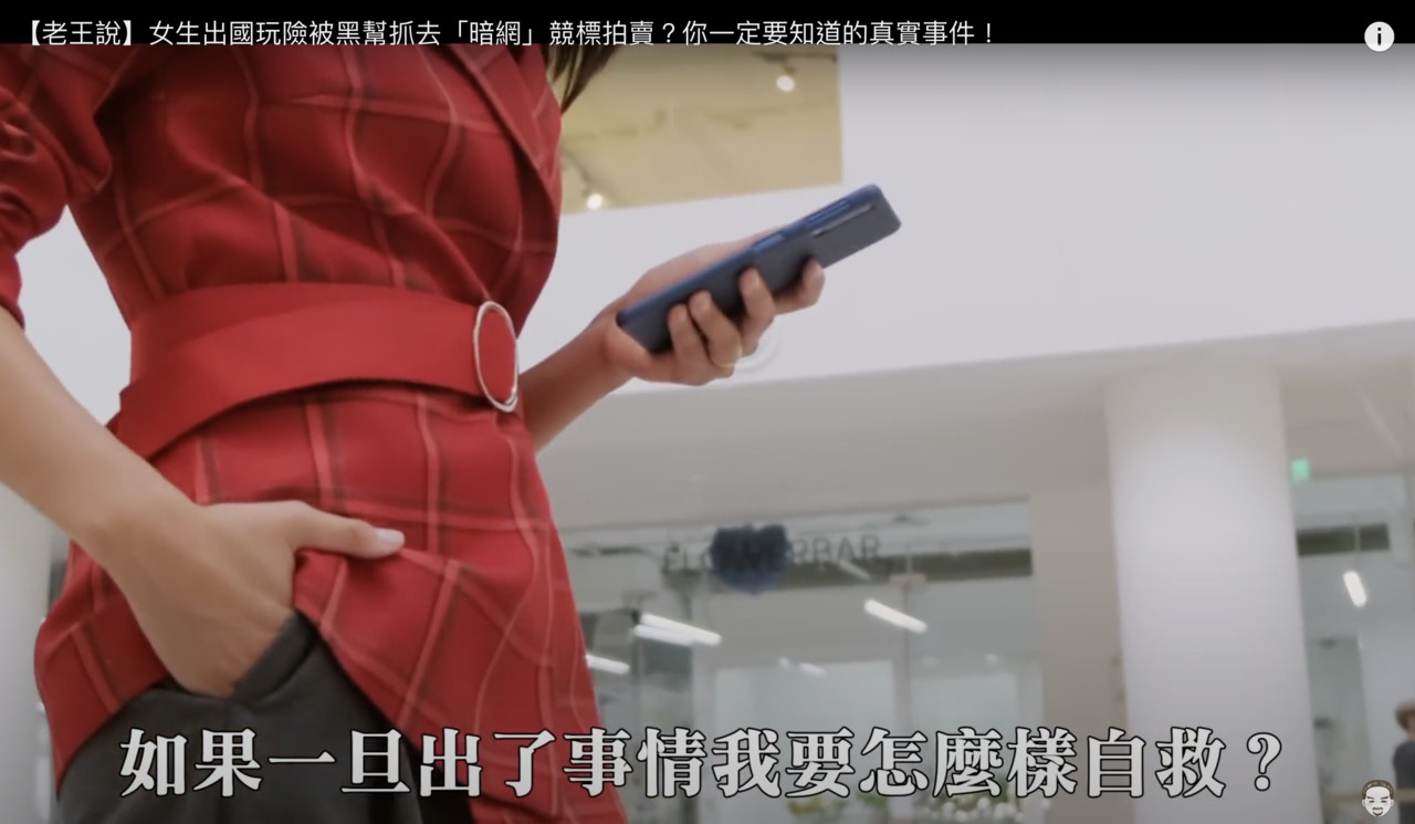 老王在影片中談到,根據交友網站的統計數據顯示,外國人對亞洲女性的刻板印象是讓女性最常被綁架的主要原因,他們認為亞洲女性順從且乖巧、含蓄、性慾強等,因此選擇作為首先下手的目標。所以不管是國內外旅行,不分國籍,每個人都要隨時保持警戒心,才能救自己一命。