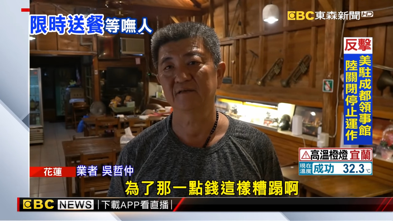 吳先生表示,他在大太陽下站了20多分鐘才離開,沒想到回店內竟突然接到該名客人的電話,還要求再送一次,讓他氣得吸收損失,怒回「我不送了,沒有必要為了這一點點這樣糟蹋啊!」