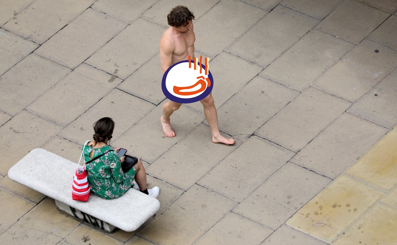 《每日郵報》報導,一名近乎全裸的男子來到倫敦牛津街(Oxford Street),他沒有把口罩戴在臉上,而是用口罩遮住下體,當成丁字褲使用,上街秀出腹肌。其他路人見狀後則露出困惑的神色。
