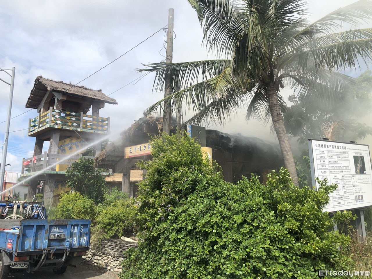 ▲▼ 台東富岡著名「巴沙哇力」聚會所火警,茅草屋頂燒光。(圖/記者楊漢聲翻攝,下同)