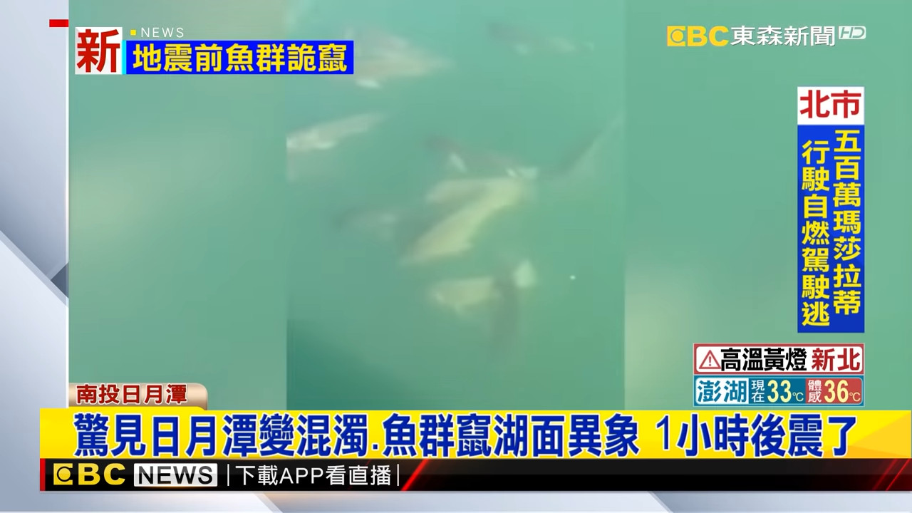 對此,氣象局表示,坊間對地震前兆有許多猜測,但都沒有實際的科學證據,況且日月潭有放水發電等作業,容易影響水中生物的行為,不能視為地震前兆。