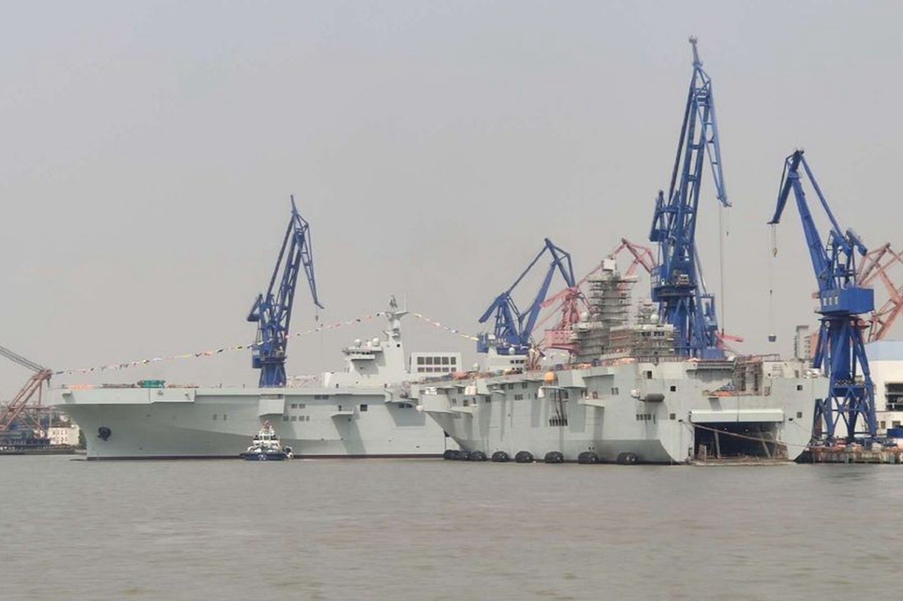 ▲今年4月,大陸075二號艦(左)下水。(圖/翻攝自微博/北方機械製造生產聯合體)