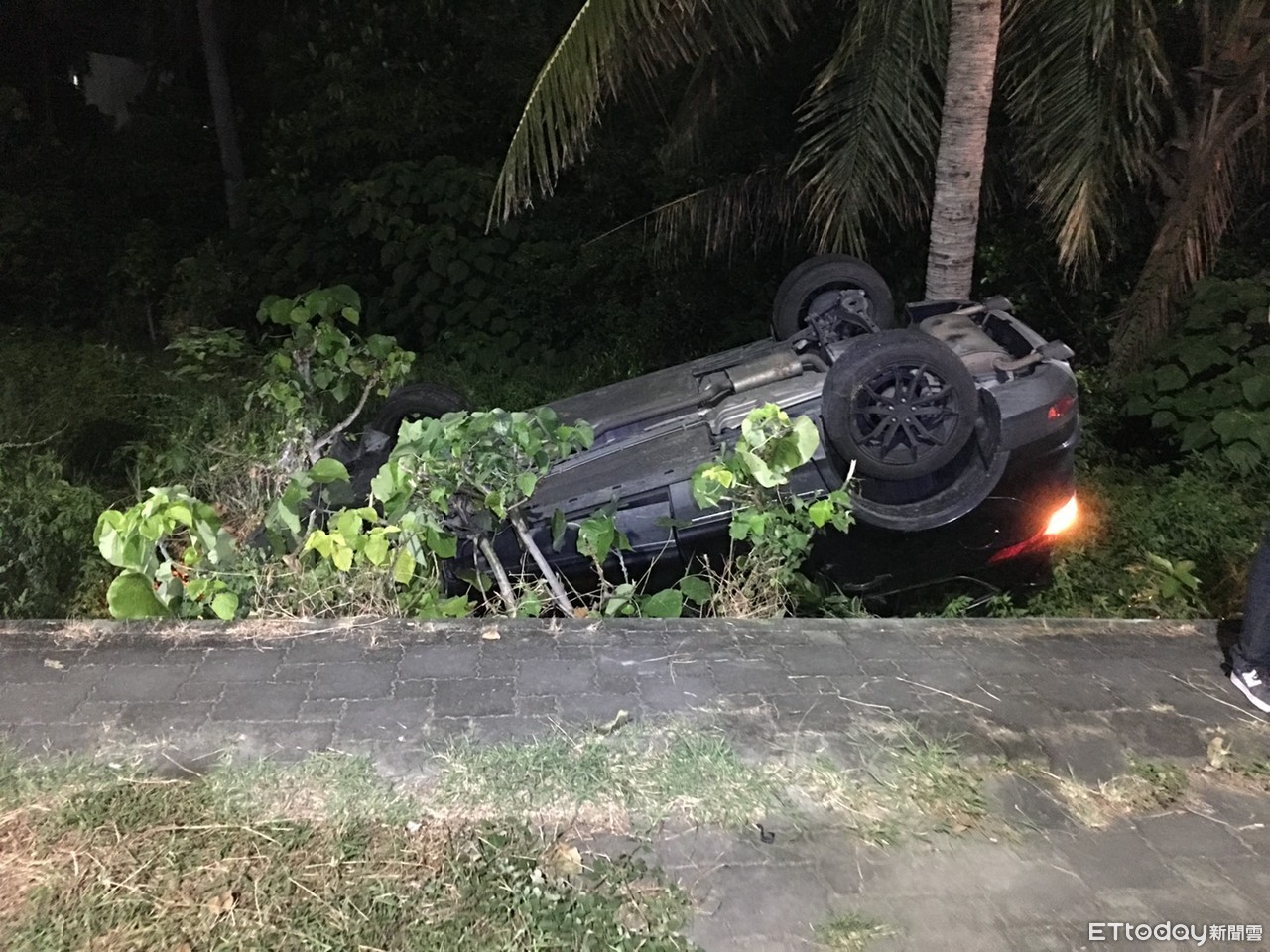 26日晚間7點多台東市外環道發生一起車禍,陳姓及謝姓民眾在外環道臨海路及鐵花路口發生擦撞交通事故,其中陳姓駕駛的自小客四輪朝天,翻落一旁凹地,幸好僅受輕傷,詳細肇事原因正調查釐清當中。