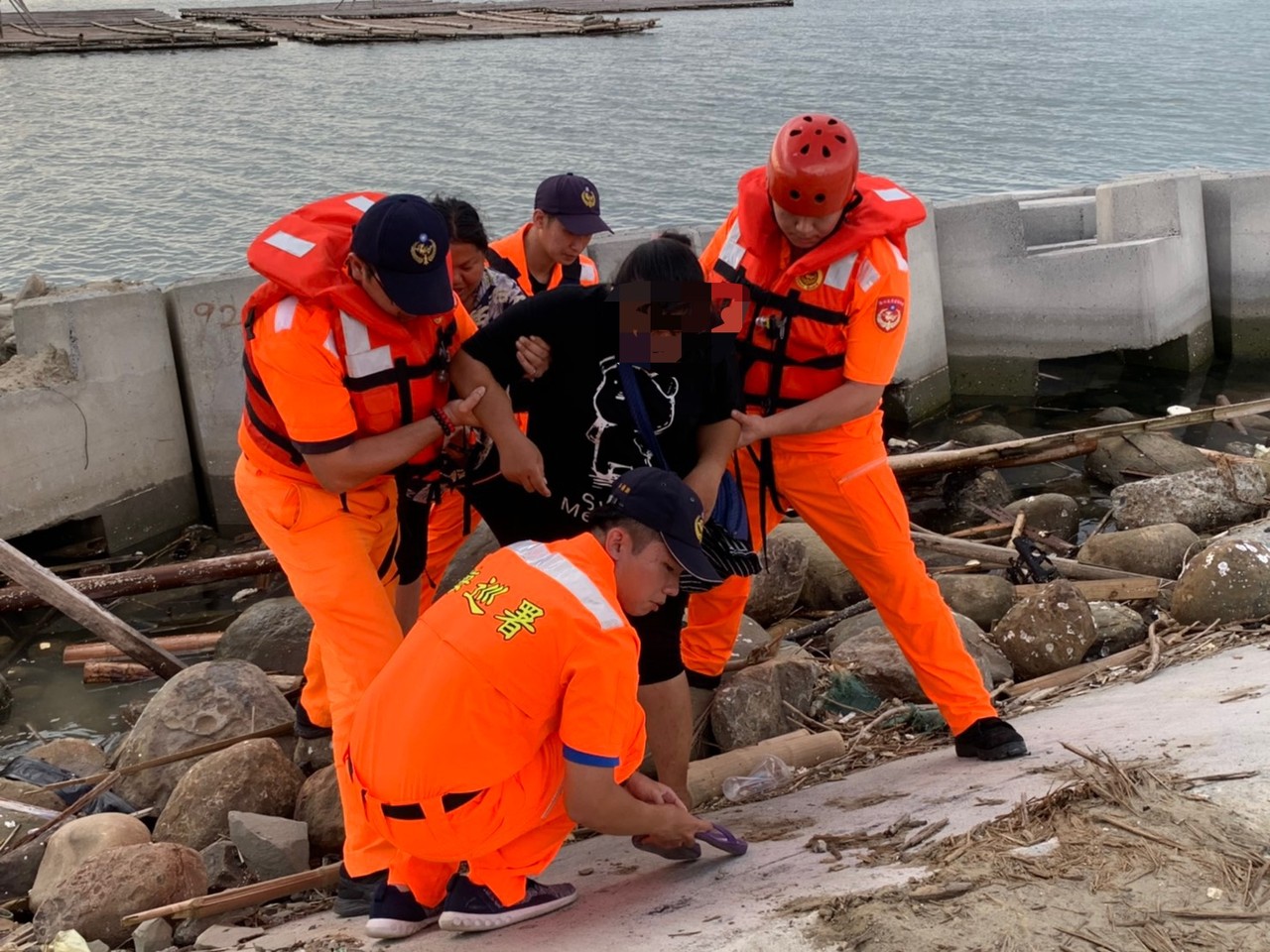 海巡署中部分署第四岸巡隊東石第二機動巡邏站27日下午16時許,接獲民眾通報,一名年約45歲婦人在東石岸際疑似意圖輕生,副站長藍翔正上尉獲報後,立即率員趕往現場並發現一名中年婦人獨自坐在東石防風林消波塊上,低頭不語及神色異常,離家後意圖投海輕生,幸好被海巡人員攔下加以開導,最終打消消極念頭。