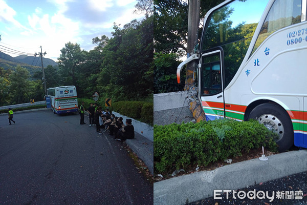 ▲遊覽車下山自撞,導致9人送醫。(圖/記者陳以昇攝,下同)