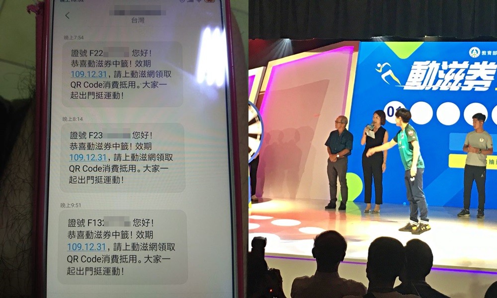體育署發放400萬張500元的「動滋券」,共698萬多人登記參與,並在28日抽出號碼,有民眾陸續收到中獎通知,開心地PO出通知簡訊。有一名男網友在臉書《爆怨公社》貼出照片,說他負責幫一家人上網填單,結果一收到中獎簡訊,原PO忍不住爆髒話,「就我沒中籤!塞你老X勒!」讓其他人笑噴。