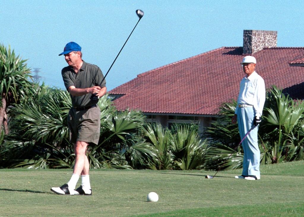 老布希在台灣發表「後冷戰時期的亞洲及崛起中的台灣」、「美國、太平洋盆地邊緣地區國家及世界新秩序」等演講之後,還和李登輝在淡水「以球會友」,一起打了場高爾夫友誼賽,結果輸給了對方,看得出來李登輝的好球技。