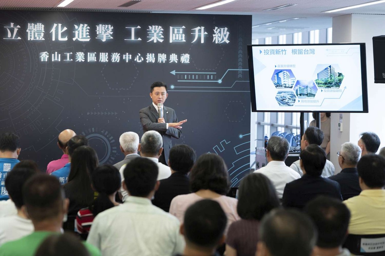 為滿足台商回流產業用地需求,並加速產業升級轉型,新竹市政府今(29)日於香山區行政大樓正式揭牌啟用「香山工業區服務中心」,提供單一諮詢窗口,協助企業了解容積獎勵政策、主動出擊輔導推動廠房立體化,以提升工業區土地使用效率及擴建或更新廠房,新竹市長林智堅說,這是全國第一個都市型工業區服務中心,能讓原本就有亮點光學、春池玻璃等「隱型冠軍產業」的香山工業區,再增加近40億產值及655個工作機會,要吸引更多企業進駐投資。
