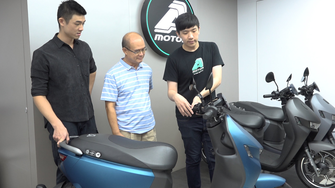 ▲▼民眾陳先生(上圖左)考量行車安全,選定宏佳騰智慧電車全新改款上市的Ai-1 Sport ABS作為父親節禮。(圖/記者謝婷婷攝)