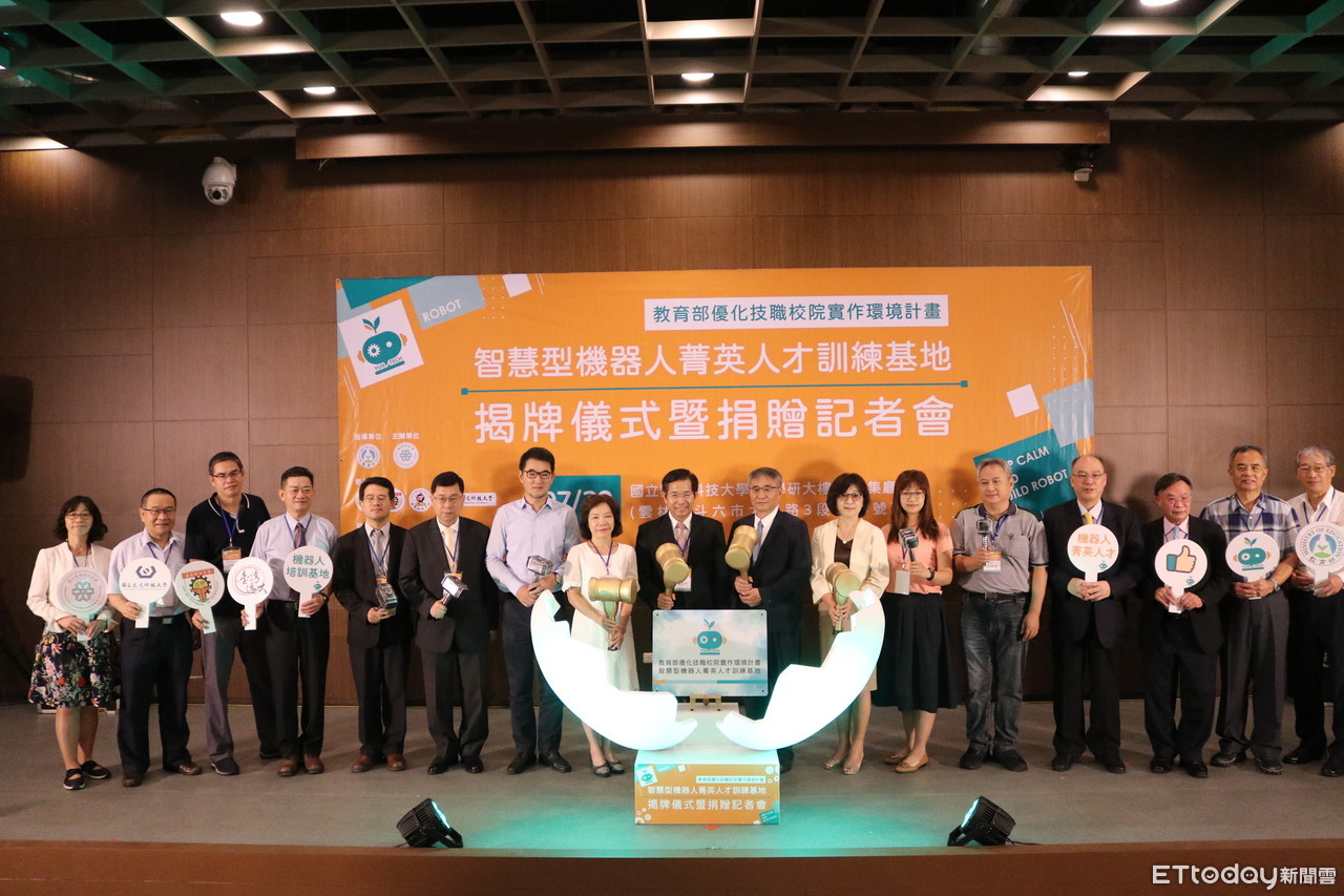 ▲國立雲林科技大學獲教育部優化技職校院實作環境計畫,今(29)日為新成立國內第一間設置智慧型機器人菁英人才訓練基地舉行揭牌儀式。(圖/記者蔡佩旻攝)
