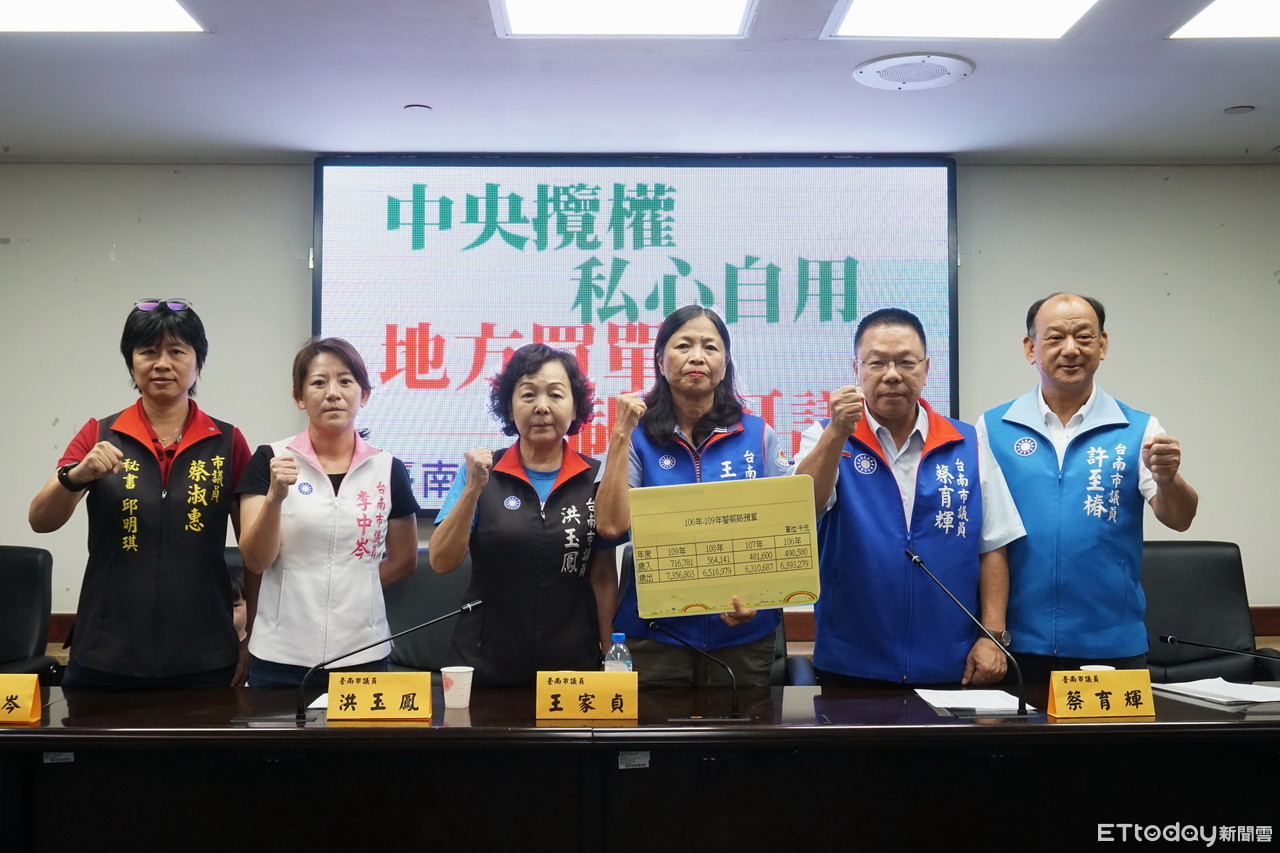 台南市議會國民黨團29日召開「中央攬權私心自用,地方買單制度可議」記者會,黨團強調,台南市警局2020年歲入預算編列73億元,中央只補助2.16億元,只佔2.94%,預算地方編,但民進黨中央說拔官就拔官,採購權全攬給警察的,卻是最差的防彈背心等裝備。