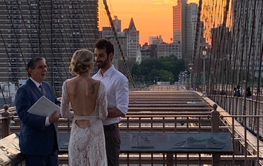 科娃蓮科受訪表示,她和老公去年開始戀愛,7月26日是認識一周年的日子,他們一早先到最喜歡的餐廳吃飯,吃完再散步到布魯克林大橋,並與網路上聘請的公證人約在橋中間,進行簡單的婚禮儀式。