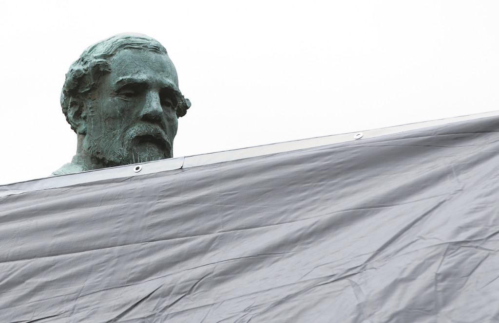 ▲李將軍生前曾領導南方軍隊捍衛奴役、壓迫、剝削、殘害少數民族的體制。圖為銅像被罩上黑布。(圖/達志影像/美聯社)