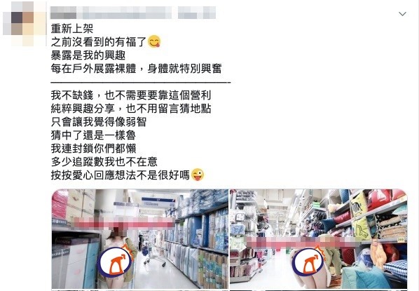 日前推特一名暱稱「台中米娜」女子,到IKEA賣場裸拍,引起網友及警方關注,另一名擁有10萬追蹤者的「薇安安」,因擁有穠纖合度的身材,加上大膽地在「家樂福」、「GU」等賣場裸露,被封為女神,更自稱不靠裸露營利,戶外展露裸體特別興奮,但警方目前已鎖定擴大偵辦中。