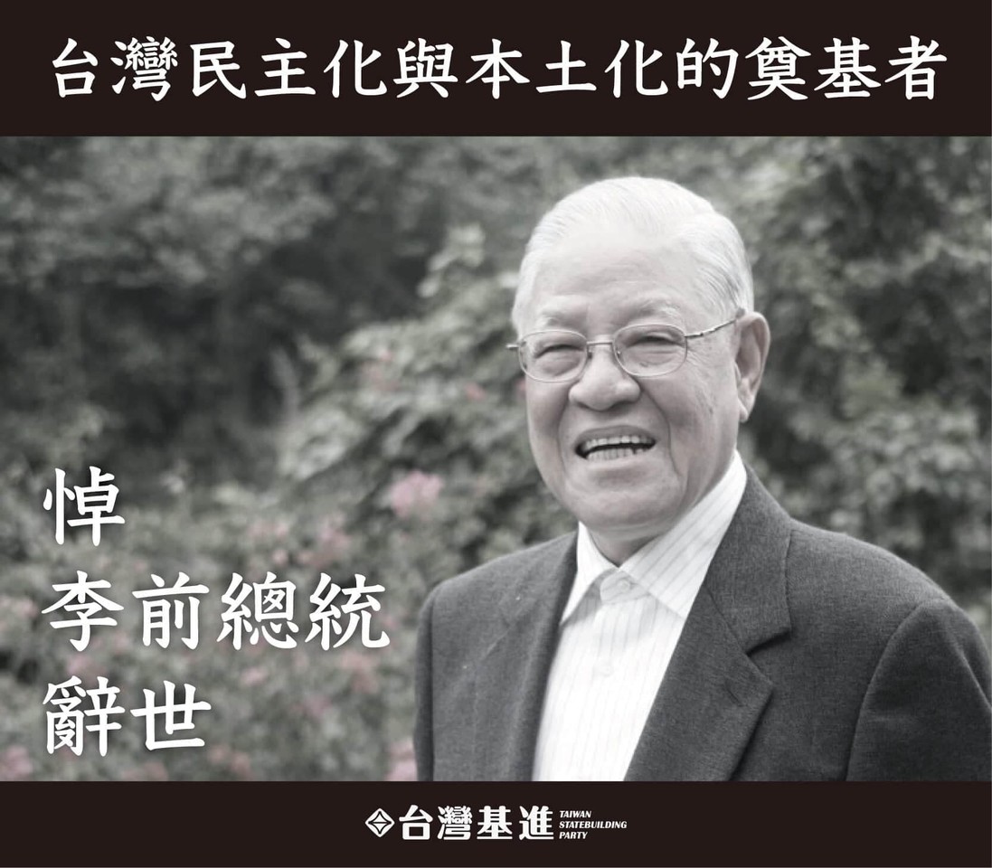 前總統李登輝長期住院,經台北榮總醫療團隊多次搶救,30日晚間7時24分病逝,享耆壽98歲。台灣基進在臉書PO出699字文章悼念,表示李前總統曾說「台灣要交給你們了」,是對生命的答案與對台灣共同體的終極關懷。