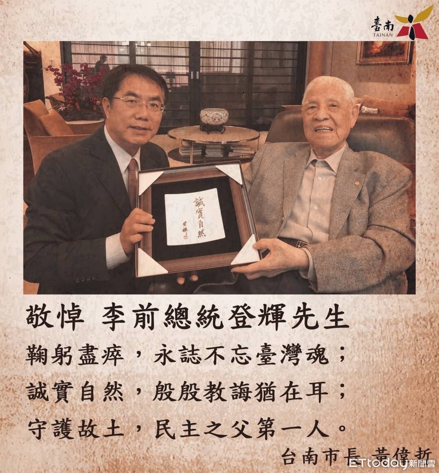 ▲前總統李登輝辭世,台南市長黃偉哲PO出向李前總統請益時之合影,感念李登輝對台灣的奉獻。(圖/記者林悅翻攝)