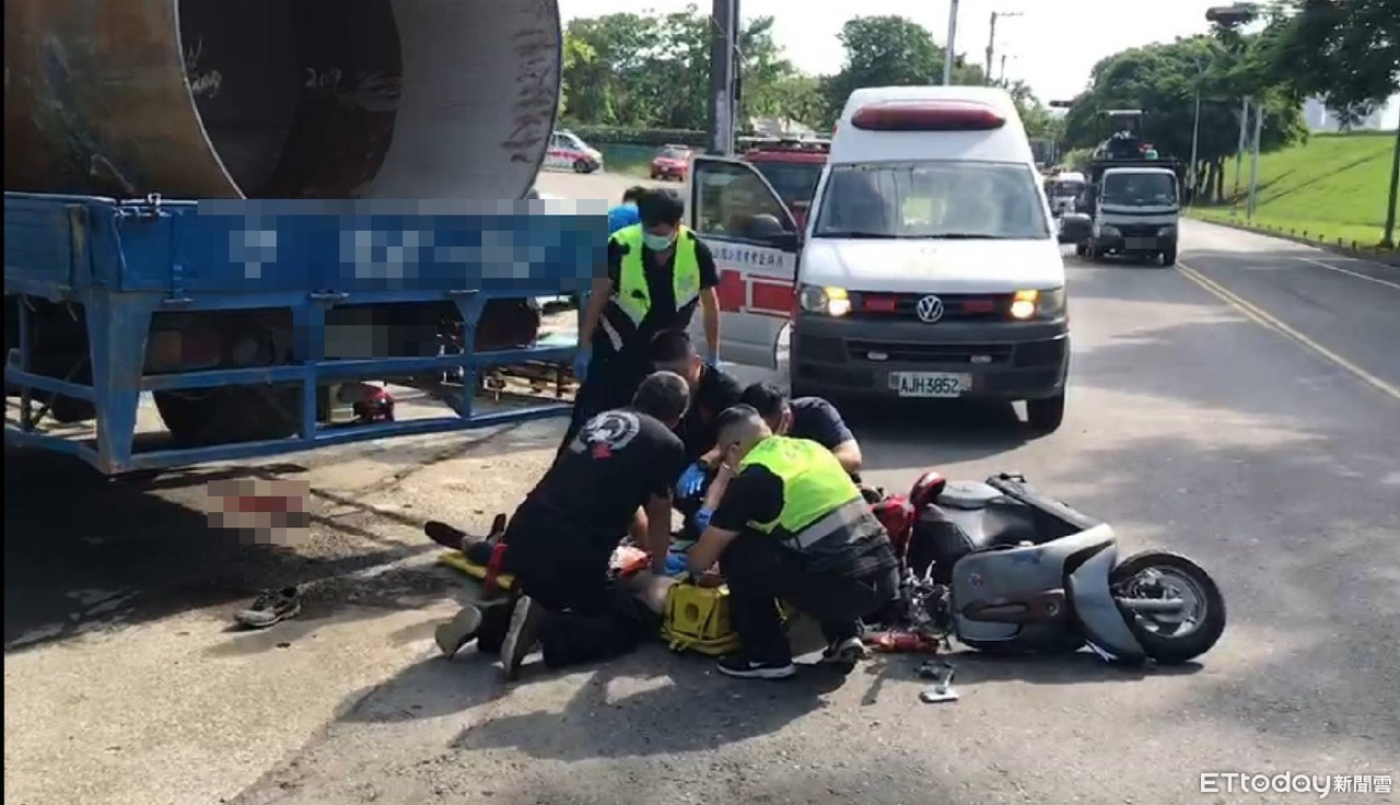 ▲新北市樹林區環漢路五段,一輛大貨車與機車發生車禍。(圖/記者陳雕文翻攝,下同)