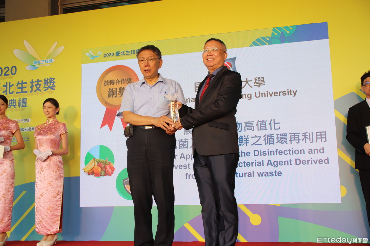 被譽為「生技界奧斯卡」的「台北生技獎」日前舉辦頒獎典禮,本次共有118家頂尖研發團隊參賽,國立中興大學土壤環境科學系特聘教授林耀東及園藝學系教授林慧玲共同以「農業廢棄物高值化民生抗菌及蔬果保鮮之循環再利用」在競爭激烈中脫穎而出榮獲台北生技獎技轉合作獎。
