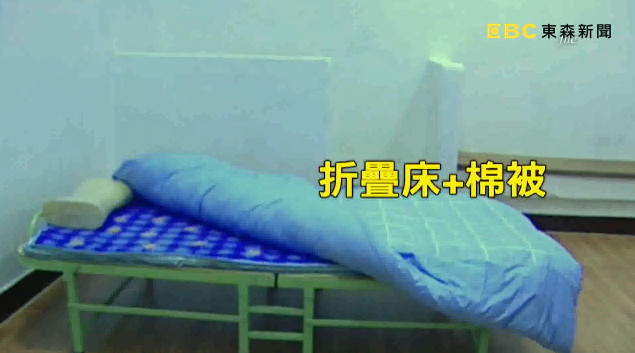 ▲▼所內設備簡易,僅有簡易折疊床供休息,以及麵包可果腹。(圖/東森新聞)